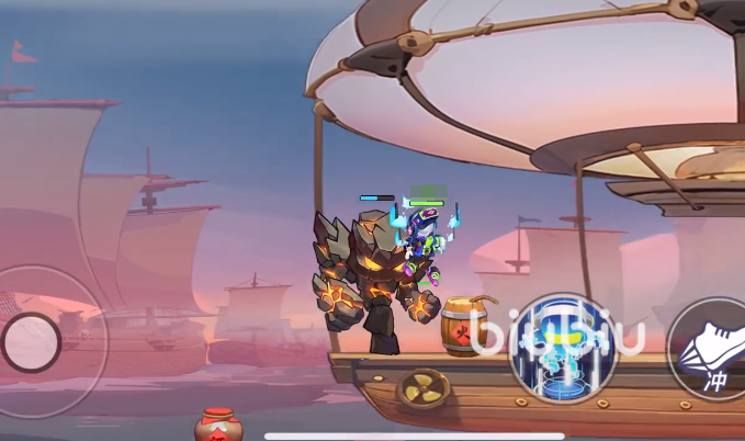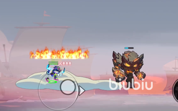 开启宝箱将立即触发特殊事件:一名石头人怪兽自箱中现身。此时建议玩家拾取武器后迅速向上跳跃,落地瞬间,火焰特效将在角色头顶生成并持续漂浮,该效果不造成持续伤害,仅作视觉提示。团队作战时,推荐由机动性强、跳跃性能优的角色优先抢占云顶,以实现资源控制与先手压制双重优势。