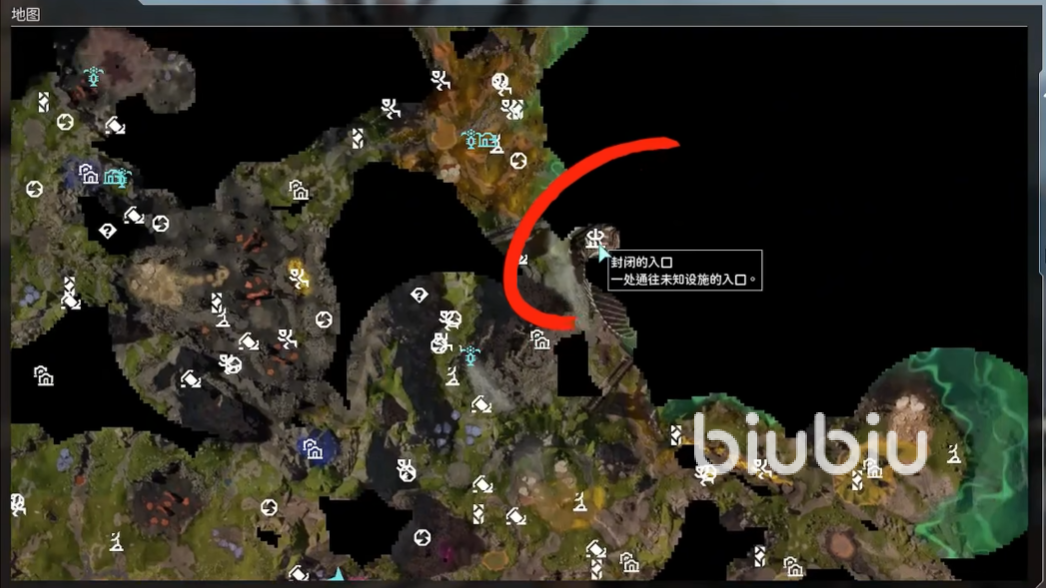 在这个游戏当中是没有载具的,跑图距离太远的时候,有传送器无疑是节省了很多时间。只有得到图纸才能制作这个道具,目前地图上唯一能得到图纸的地方就是遗忘引擎这里。请打开大地图,将视角拉倒最右边,会看到一个封闭的入口。