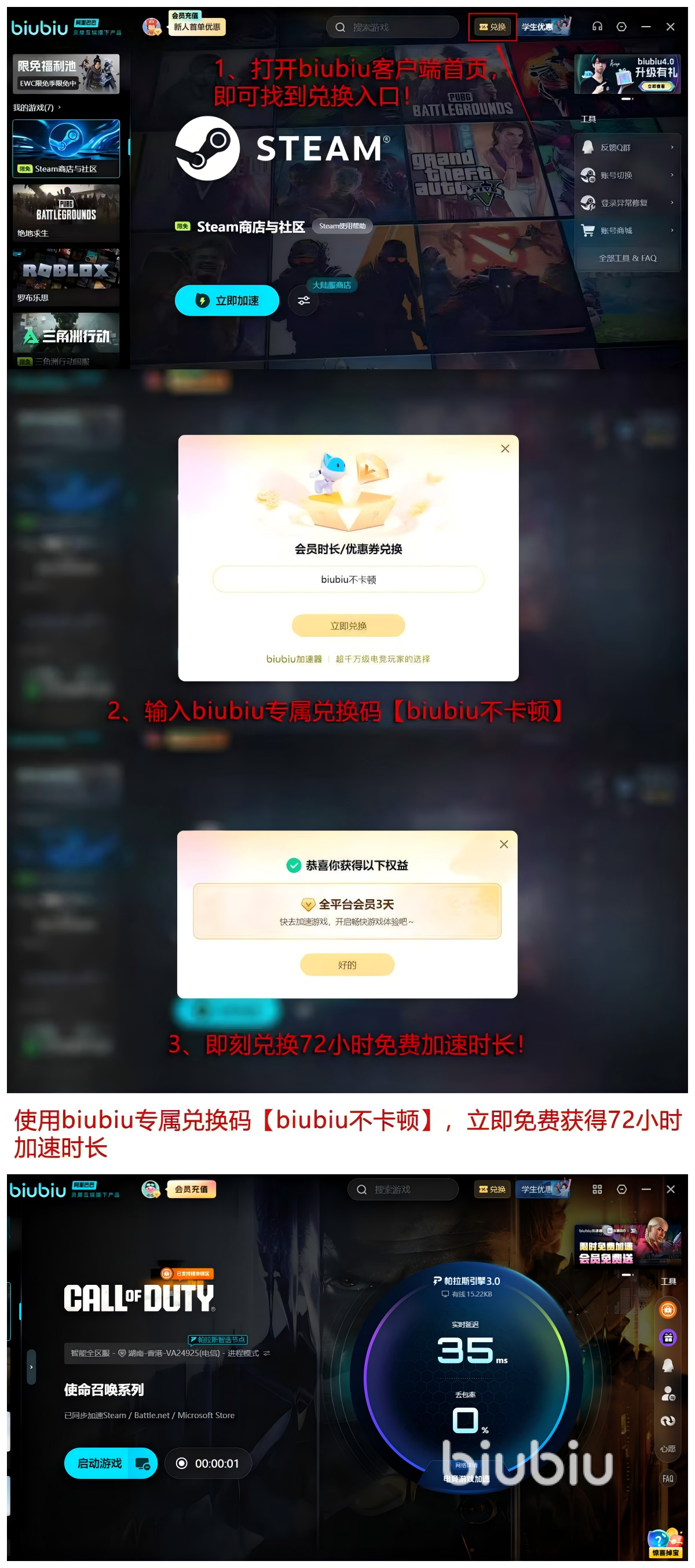 【biubiu不卡顿】口令72小时能轻松获取,并且还有24小时新用户福利,一个新账号总计能够获得96小时的免费会员时间,相对于其他的同行可以说是非常的良心,有着极强的竞争优势,同时存在各种活动变相为各位发放福利,对于需求者能提供非常多的帮助。