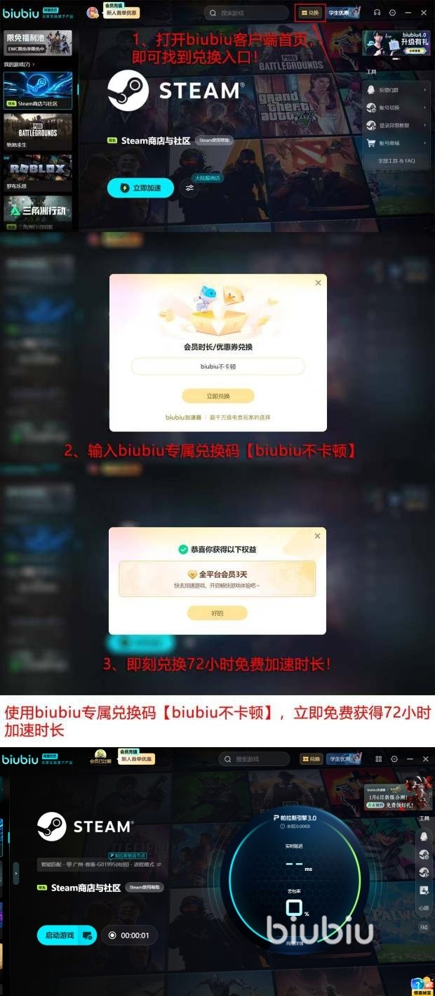 相信看到这里就已经有很多玩家想要去体验了吧,不过不要急下文中会给到大家一个口令,这是专门给到玩家的福利,通过这个口令就能领取到免费的加速时长了,这个口令就是【biubiu加速器】在完成口令的兑换后可以轻松得到72小时的加速时长,之后作为新用户注册后还可以领取24小时的时长,这么一来就是一共可以拿到96个小时的使用时间了,这个时间足够玩家放心体验很多游戏了。