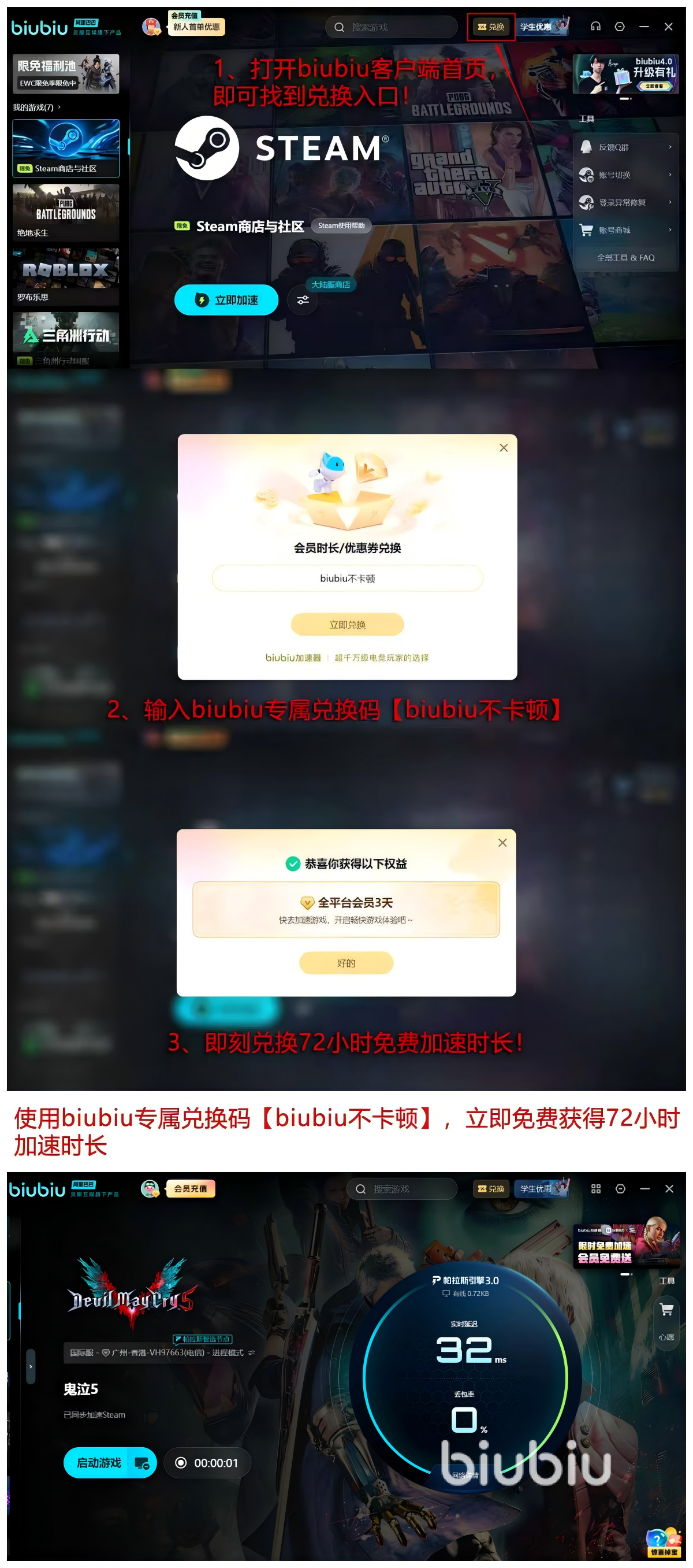 【biubiu不卡顿】口令72小时定制,新人用户可以解锁24小时,总计得到96小时的加速效果,对于所有的用户来说都是值得推荐的,包括想要不付费的羊毛党用户,基本上都能都能得到自己需要的东西,产生的成本异常的小,足够各位的体验。
