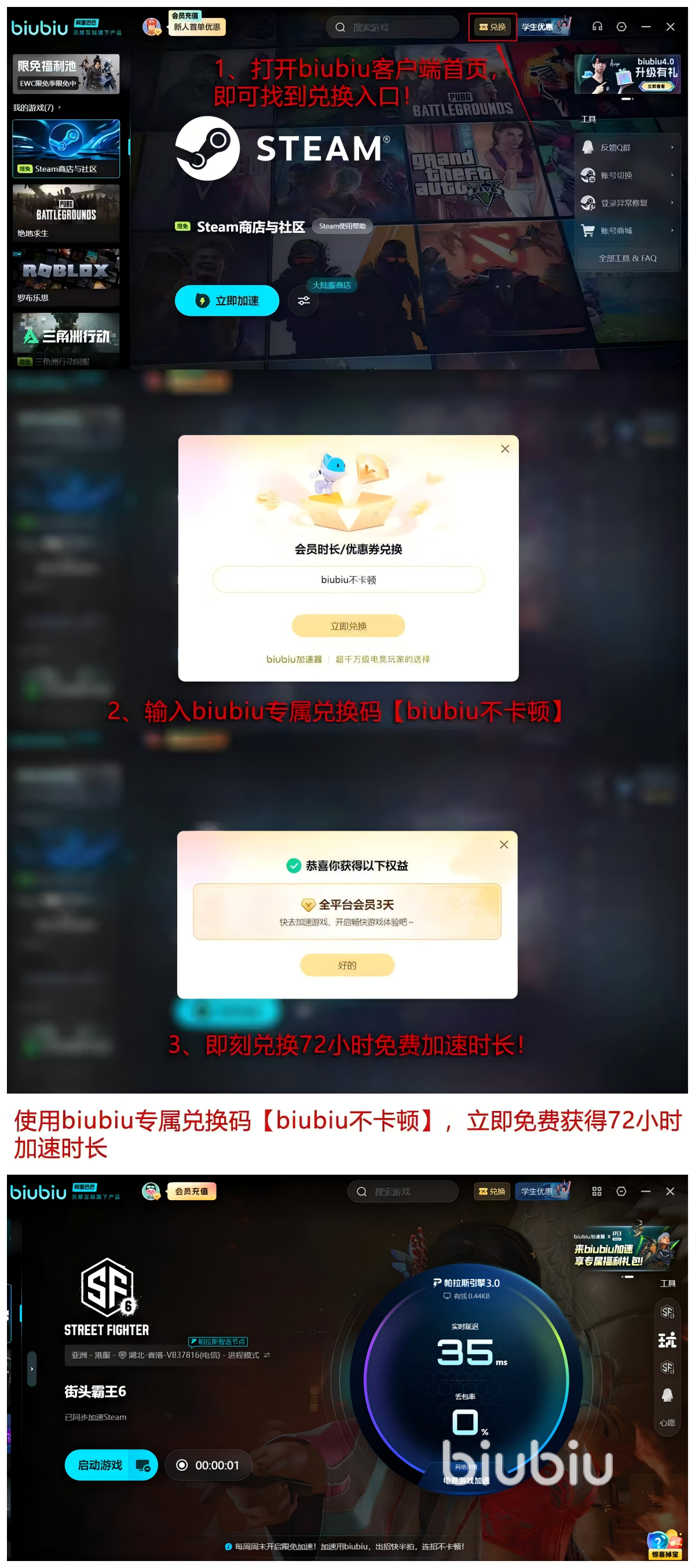 【biubiu不卡顿】口令有72小时能得到,新人可以获取24小时时间,总计能够获得96小时的加速时间,对于众多的用户来说每一分钟都是尊贵的会员时间,都是能享受付费用户同等的待遇的,而且口令可以存着用,保证会给大家带来不少的帮助的。