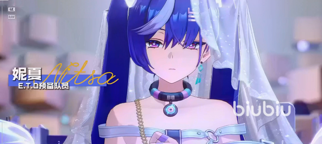 5、妮夏——ETD预备队员,填补队伍控制链缺口。核心能力为形态转换,支持地形穿越、伤害承接及负面状态减免。视觉设计上环绕幽蓝鬼火,下肢呈现拟态发光触手结构,兼具机动性与抗压性,触手系统亦构成其主要攻击载体,适用于复杂环境下的控场与生存场景。