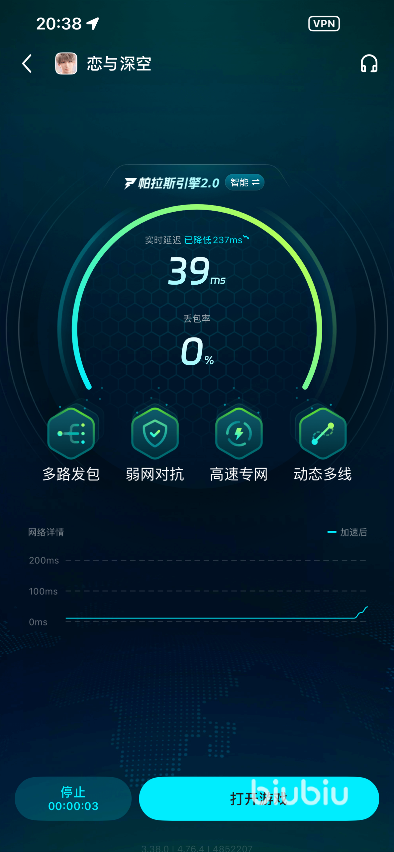 为了稳定连接恋与深空中的世界,并做好每个支线或者剧情任务。那就必须使用上行业综合性能第一名的biubiu,毕竟它还获得了阿里巴巴灵犀互娱大厂技术提供,自然能享有极佳的优质网速,体验起来更爽,不管在线多长时间,也依旧可以避免消失。有的玩家担心要花钱,不怕!该加速器手游加速免费,大家可尽情地为自己心爱的手游开启加速,就算玩多长时间都行,没有限制。很多人也想体验一下其它海外大作,还好它所支持提速的佳作很多,轻松涵盖全球,可以让大家随意地体验不同手游,嗨玩不停!