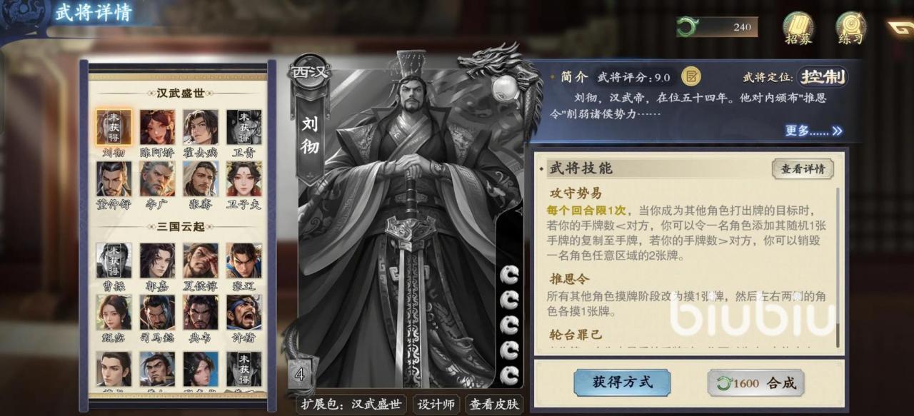 刘彻的核心机制围绕“手牌管理”与“动态防御”展开。“攻守势易”为其关键回合外技能:当其成为其他角色使用牌的目标,且手牌数少于该角色时,可指定一名队友,令其随机获得目标角色一张牌的复制效果。这一设计不仅强化团队协同,更能在对手出牌节奏中制造干扰,形成实质性压制。“推恩令”则提供稳定的手牌补充与转化能力,增强持续作战韧性。