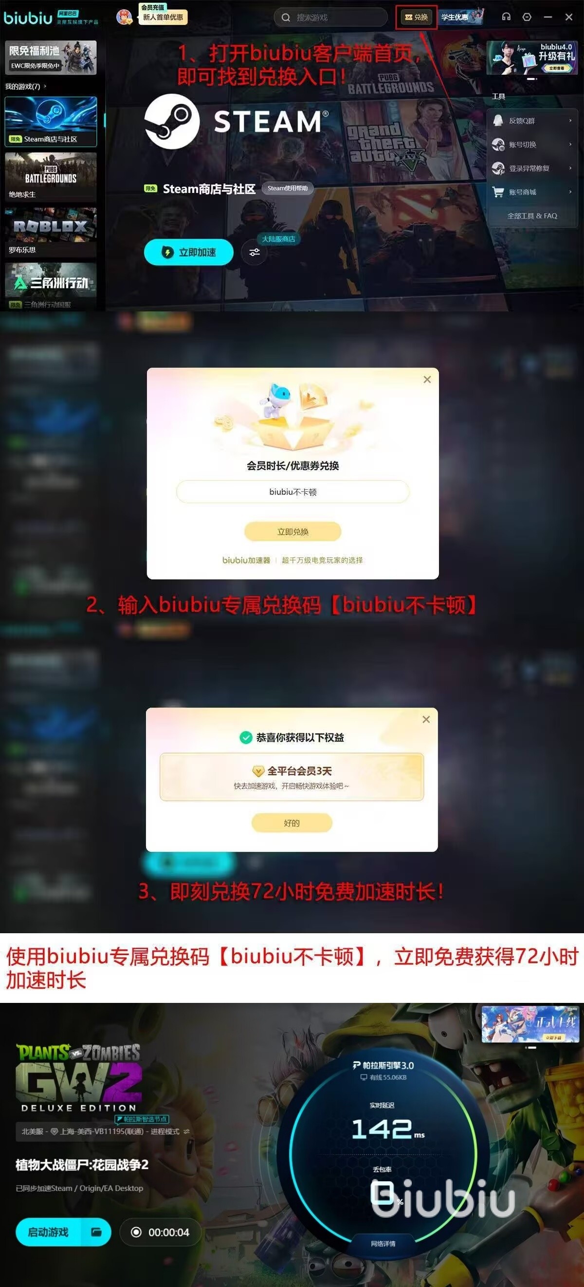 强大的功能价格也十分亲民,高性价比的优惠政策给大家提供了更多的便利。对于老玩家的用户不定期的推出优惠券和续费折扣,最大 程度的降低开销。新用户还能享受到平台提供阶段体验权益,完成了基础注册之后24h全功能免费试用权限即时可以激活。另外平台还为大家额外准备了72个小时的弹性的会员专享优化时间,只需要大家将【biubiu不卡顿】这句口令正确的编辑到兑换入口,就能自动完成领取,保证首次基础就能获得完整的服务验证机会。而这个口令,是为平台的所有用户准备的。