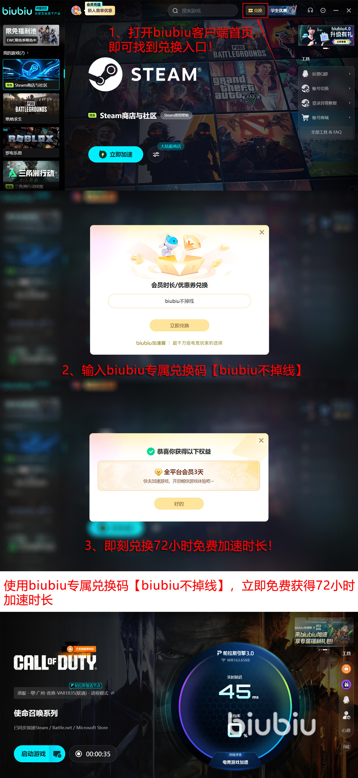 同时,新号注册直接送24小时,暗号【biubiu不掉线】再给3天。总共能免费用96个小时,这次联动的所有东西,都够你安心玩个遍了。