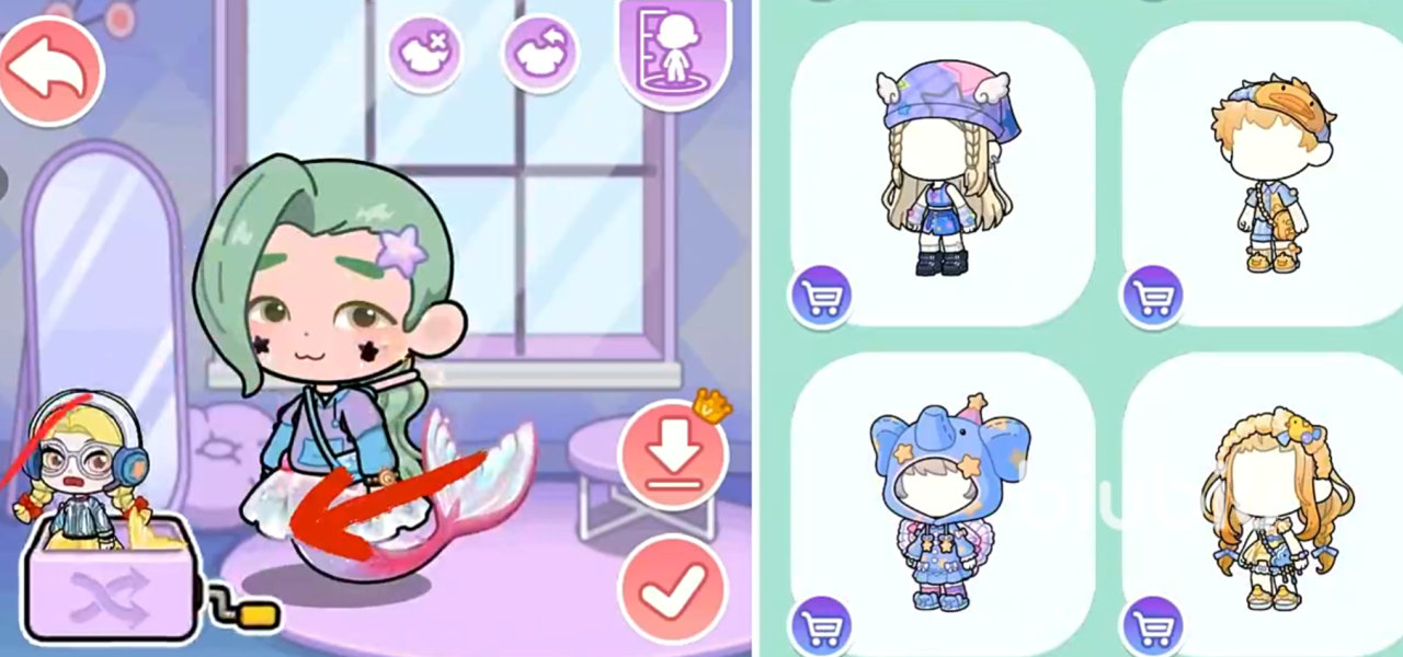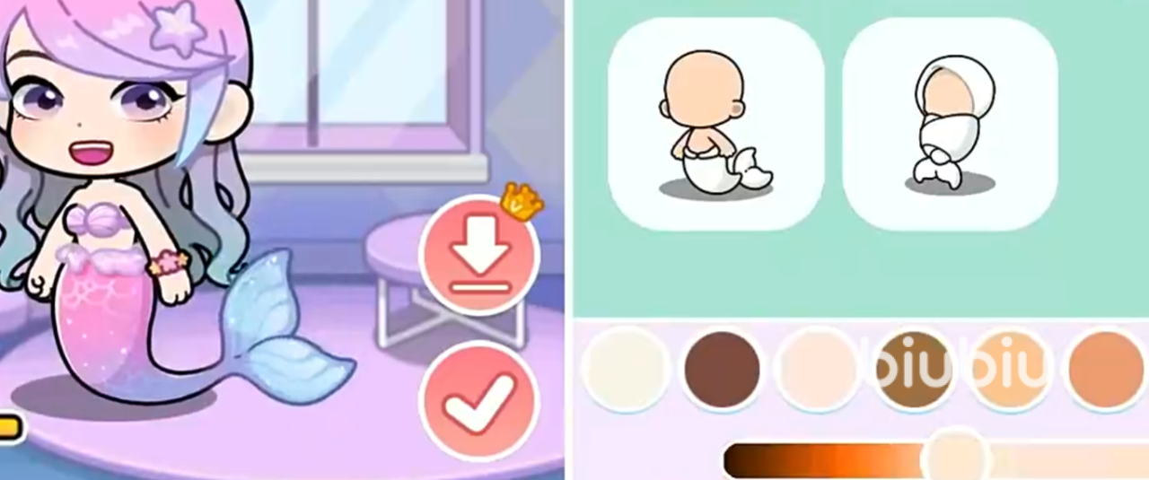 除发型外,面部细节同样支持精细化调整——包括眼型轮廓、瞳孔大小与高光强度、唇形弧度及口红饱和度、腮红位置与晕染范围等。身体形态方面,可切换常规人类体型或特色鱼人形态;服饰系统提供多层级搭配方案,从基础装束到主题套装均可自由组合,所有参数均支持实时预览与微调。