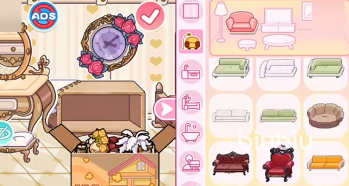 除成品家具外,游戏还开放DIY建造入口:点击界面右上角“+”按钮即可进入编辑模式。在此模式下,玩家不仅能自由调整家具位置、旋转角度与缩放比例,还可对单件家具进行色彩重涂——系统内置多组色盘,支持实时预览效果,便于统一整体视觉风格。