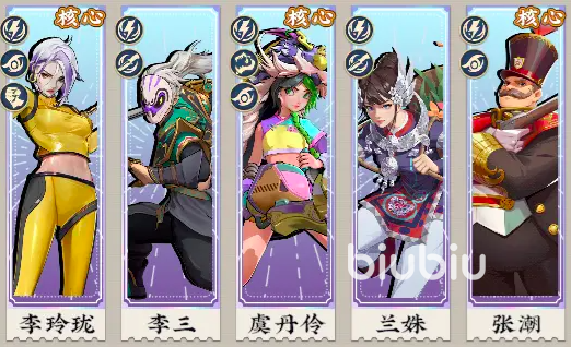 推荐首发五人阵容为:李玲珑、李三、虞丹伶、兰姝、张潮。其中李玲珑为咏春拳技能唯一绑定角色,其基础属性自带高额暴击率与技能冷却缩减,与咏春拳的多段连击机制形成天然协同,可最大化释放“寸全拳”的连续打击效果。