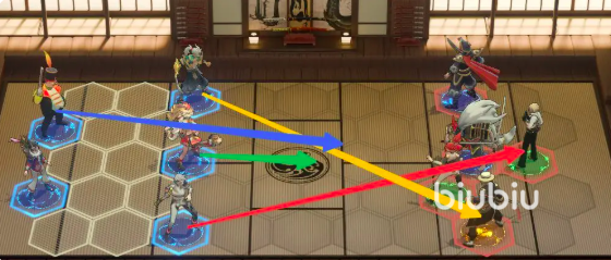 再来看站位部署:前排由李三、虞丹伶、李玲珑三人组成三角阵型,李三居左、虞丹伶居中、李玲珑居右;后排则为张潮与兰姝。特别注意——李三与虞丹伶必须保持相邻站位,确保李三施放“远距钩锁”将敌方后排拉至前排后,虞丹伶能立即覆盖其群攻范围,完成控场+清场双效衔接。