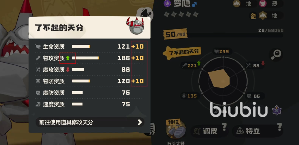 每位精灵在图鉴界面中均明确标注其种族值与个体值。即使同种类精灵,因个体差异,这两项数值也各不相同。因此,建议玩家在野外探索时批量捕获同类精灵,再通过对比筛选出种族值高、个体值优的优质个体作为主力培养对象。若当前精灵基础属性尚有提升空间,可借助适格钥匙优化个体值上限,并通过魔法炼制获取契合的血脉效果,从而系统性强化洛克系数。