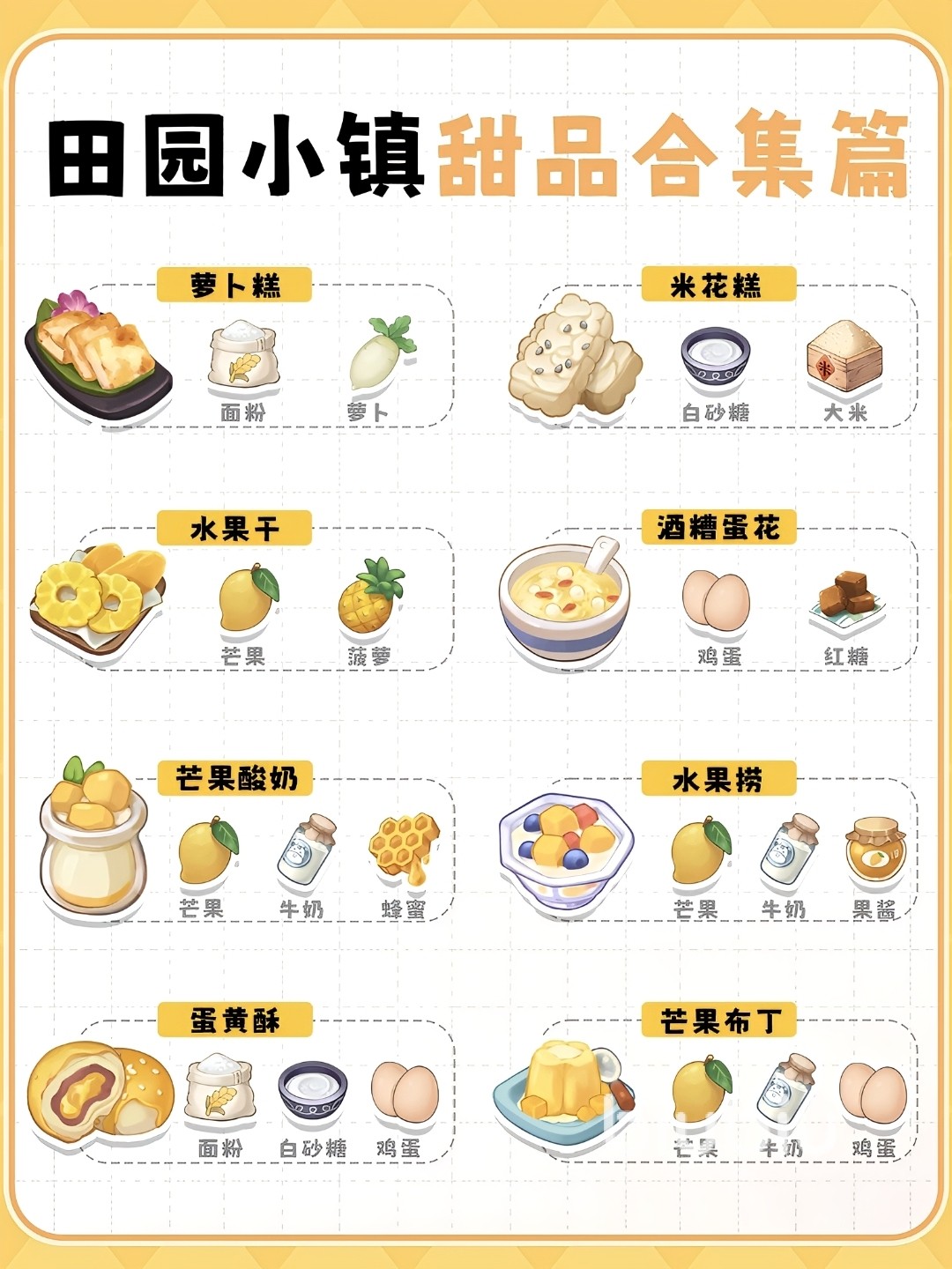 田园小镇甜品种类覆盖全面,既包含现实存在的主流甜点形态,也融合原创设计元素。该系统旨在通过低门槛上手、高自由度创造、强情感共鸣的设计逻辑,引导玩家在模拟制作中获得正向情绪价值,缓解现实压力,实现游戏疗愈功能的有效落地。