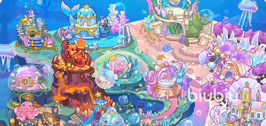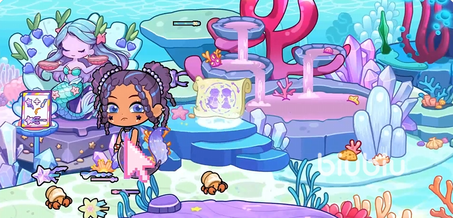 场景内绝大多数静态物件均支持点击响应,部分小型道具可拾取并持握于角色手中;在美人鱼之家可进行个性化形象调整,在服装店可购置外观装备——特定限定服饰组合将解锁配套动作套组;而部分区域暗藏不可见触发点,需通过非常规操作(如连续点击某装饰物、按特定顺序触碰多个目标、停留超时等)方可激活隐藏剧情或奖励事件。