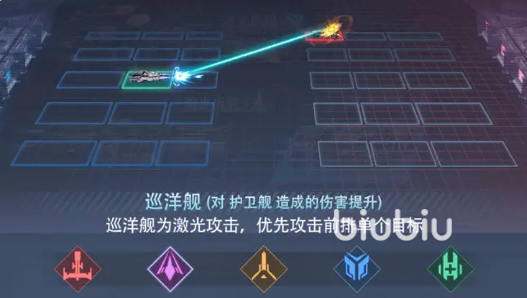 战列舰作为重火力中坚,依靠高能激光束实现穿透式打击——除主目标外,还能波及上下相邻两格单位,形成纵向三连击效果。该机制使其在阵列压制方面具有不可替代性。同时,战列舰对巡洋舰存在天然属性克制,伤害加成显著,是反制敌方突击体系的核心选择。其战场角色以中军压阵为主,提供稳定、持续的远程火力覆盖。