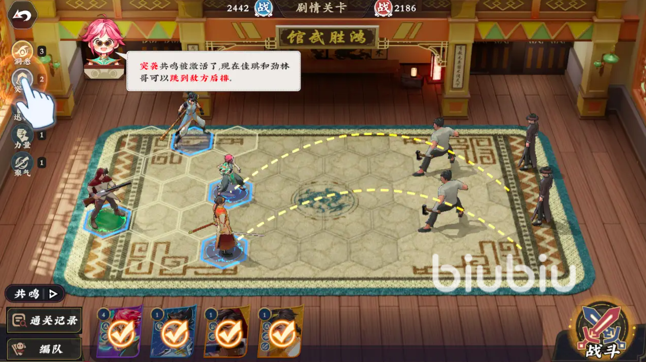 阵容构建与阵型演化构成深度策略内核。标准五人阵中,前排承担抗压、控场与中距离输出三重职能;后排专注远程爆发、持续伤害及治疗支援。实战中建议采用“前排诱敌+后排集火”模式:通过前排侠客吸引敌方首轮技能释放,并利用嘲讽、格挡等机制延长生存时间,为后排创造安全输出窗口。成功压制敌方前排后,即可形成双线压制优势,大幅提升通关效率。
