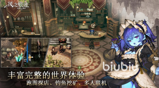 在传统RPG框架之外,《风之痕迹》拓展了多元生活模拟玩法:钓鱼、采矿、基地经营等系统穿插于主线间隙,既调节游戏节奏,也强化角色与世界的联结感。全作采用高精度复古像素美术,背景细节丰富,配合跨地域场景切换(如雪域高原、热带群岛、工业遗迹),构建出兼具怀旧质感与现代叙事张力的视觉体系。故事内核聚焦个体成长与自我追寻,而非单一救世叙事,情感表达含蓄而深沉。