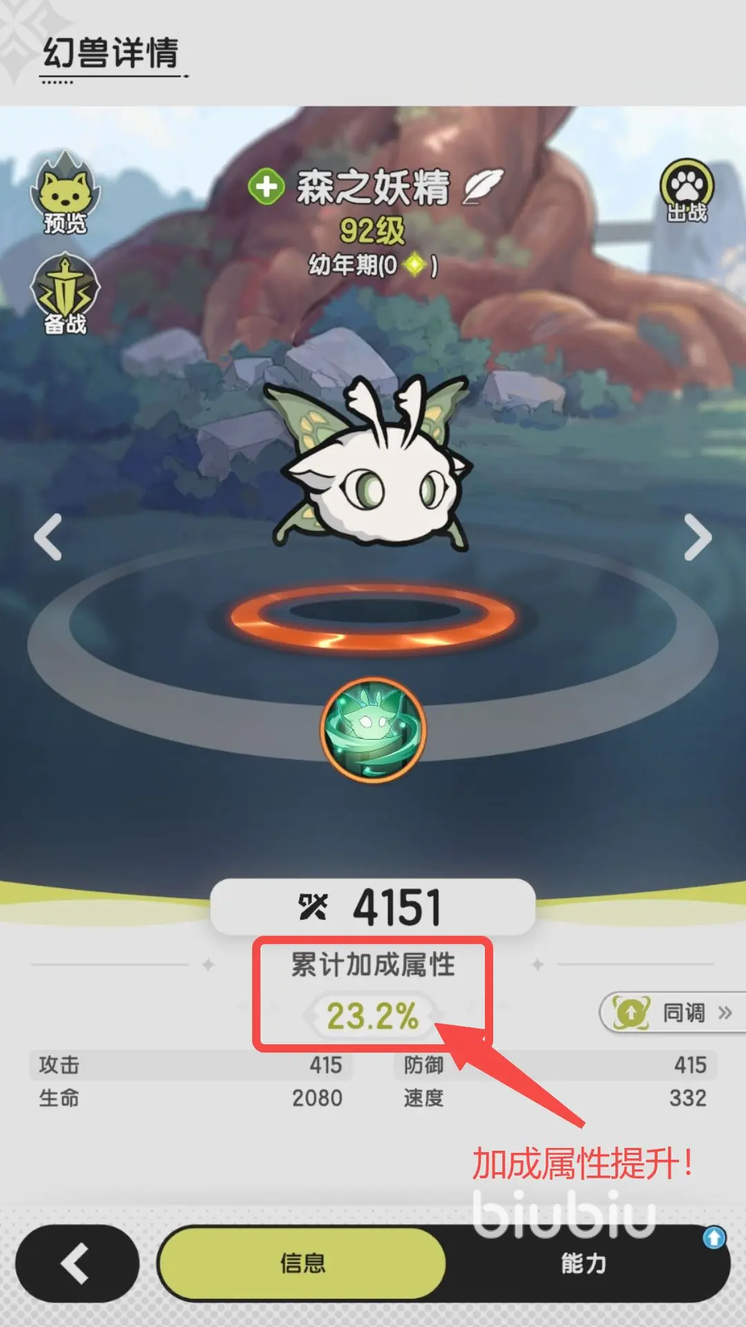 操作路径清晰直观:进入幻兽养成界面后,页面右下角将显示“同调”按钮;点击即可跳转至同调专属面板,完成激活后,幻兽各项属性加成百分比将即时提升。需注意的是,同调等级越高,所需幻兽碎片数量越多,但对应获得的属性增幅也越显著。