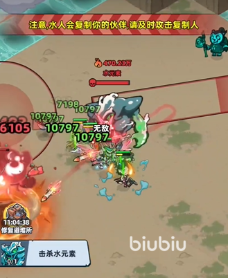 三、水元素Boss(召唤+范围伤害型) 该Boss具备双重威胁:自身释放大范围技能,并周期性复制多个小怪协同作战。正确流程为:先集中火力快速清剿召唤物,再集火本体。推荐由异能系幸存者担任主输出,利用其高频率技能衔接实现高效群攻。【沙漠考古学】技能书在此场景中价值突出——其生成的血包可显著延长团队持续作战时间,缓解AOE与小怪双重压力下的续航危机。