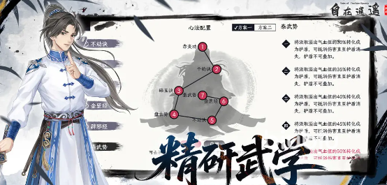 《自在逍遥:风起》支持三大职业初始选择:刀客以刚猛之力见长,玄门修士通晓天地法理、驭使法术,毒师精于毒性叠加与心神侵蚀。每种职业均配备三种门派绝学、35种可研习心法及7类基础武学。战斗采用“4技能+1绝学”组合机制,衍生出海量连招可能;不存在绝对强势流派,只有贴合个人风格的最优解。