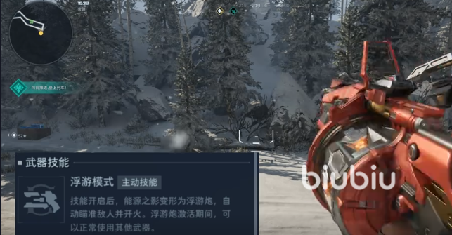 随着主武器等级提升,该被动爆炸伤害呈阶梯式增长;至三阶段时,单次爆炸已可直接击飞精英单位。另一核心技能为“浮游炮”,在猎场模式下,只要将能源之影置于背包,便会持续自动充能。能量蓄满后激活,武器即刻变形为悬浮装置,自动锁定周围敌人并发起攻击;同时,当前装备的主武器将获得持续20秒的伤害加成——该增益窗口精准匹配BOSS破防周期,大幅提升爆发效率。