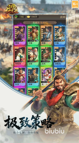 本作摒弃纯自动挂机模式,构建以“手动连携”为核心的战斗系统。玩家需实时判断战场局势,自主释放武将大招,通过操作精度弥补战力差距,实现以弱胜强的策略逆转。阵营体系覆盖魏、蜀、吴、群四大势力,内置五虎上将、魏武英豪等十余种羁绊组合;兵种间存在明确克制关系,排兵布阵需同步权衡羁绊激活条件与属性克制效果,方能最大化输出效率。