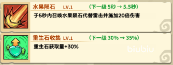 值得注意的是,凯撒具备独特的环境响应机制:在特定战斗条件下,其常规雷击将自动替换为【水果陨石】。该效果并非独立技能,而是基于战场态势触发的战术变体——当敌方单位高度密集时,水果陨石可实现范围高额伤害与强制击退,高效清理小怪群;当Boss进入狂暴阶段(表现为攻击频率骤增、技能前摇缩短等特征),该机制亦会激活,为团队争取关键的调整与集火窗口期。