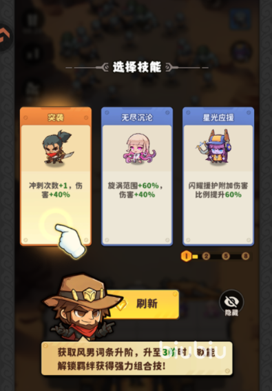 击败丧尸后将掉落经验值,用于提升角色等级与基础属性;同时,系统会在战斗中随机提供肉鸽式技能模块,每次出现三个选项供玩家抉择,适配当前战局需求。此外,每位角色拥有三段差异化主动技能,释放时机与目标选择直接影响战局走向。每波敌人数量固定,成功抵御全部波次即可完成该关卡挑战,逐步重建末日秩序。