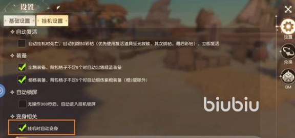 天神系统的入口位于主界面右下角,点击即可进入专属面板。需特别注意:默认挂机模式下,天神变身不会自动激活。若希望提升离线收益效率,须手动开启“挂机时自动变身”选项——该设置位于挂机配置页。同时建议同步启用基础设置中的“自动复活”与“自动装备出售”功能。例如,当背包剩余格数少于5个时,系统将自动分解绿色、蓝色品质装备,避免资源堆积,确保挂机流程持续稳定运行。