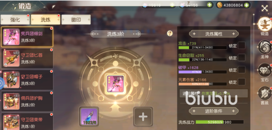 洗练系统用于深度挖掘装备潜力。初始开放1个免费洗练槽位,后续槽位需消耗绑定钻石解锁。玩家可使用通用洗练试剂或对应品质(如红色、橙色)专用试剂进行属性重铸,以匹配自身流派需求。所有已激活的洗练属性在更换装备时均可完整继承,无需重复投入资源。