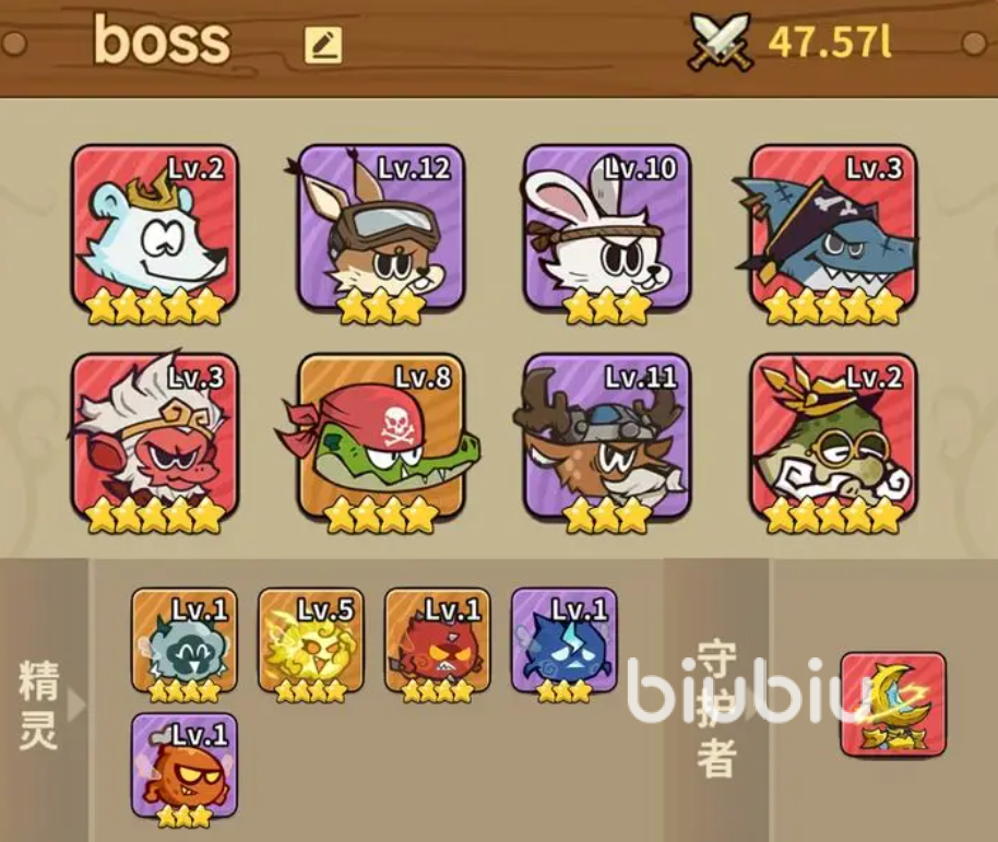 爆发流阵容适用于多数单体高血量BOSS场景。该体系以鲨鱼为核心输出单位,其被动技能可随战斗进程持续提升箭矢等级,形成稳定且可观的单体伤害下限。辅助英雄包括粉红豹、老虎、熊、猴子、死神、鳄鱼及斯蒂芬博士,其中猴子承担关键增益职能,提供攻击加成与行动频次优化。精灵配置推荐风铃(强化暴击率)、海格力(提升暴击伤害)、坏坏(缩短技能冷却),三者协同保障主C输出环境与持续性。