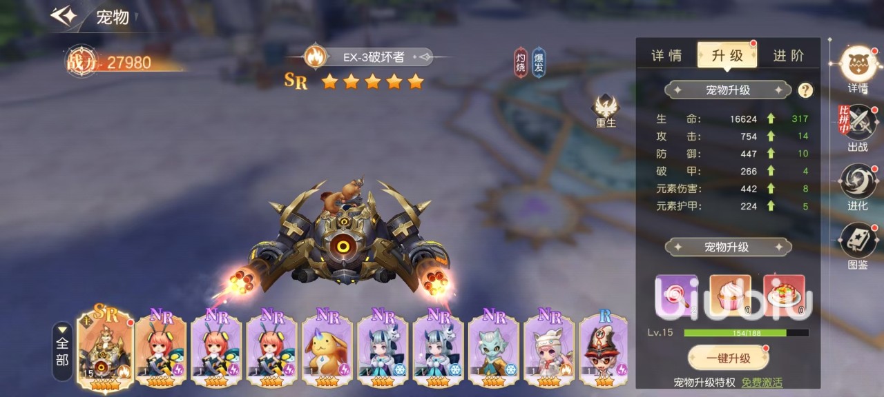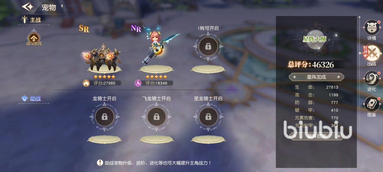 第三,宠物进化:完成进化后,宠物将获得额外成长率加成,并同步提升主动技能与专属技能的等级上限,是质变式战力跃迁的关键节点。 养成完毕的宠物需配置至战斗序列。随着角色等级提升,可上阵宠物数量逐步开放,最高支持3只宠物同时出战,并额外配置3只助战宠物。出战位建议部署属性最优、技能适配度最高的主力宠物;助战位则可安排次级优质宠物,以进一步放大整体战力增益。