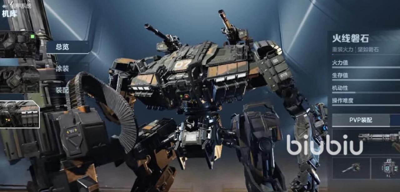 巨兽重火力型机甲主打极致单发毁伤效能,初始形态即搭载双联装重装加农炮,一发命中即可造成高额重创效果;搭配喷火器后,可在近距混战中实现范围灼烧压制,降低瞄准精度依赖。为弥补其机动短板,建议挂件选择多联装T3型火箭弹(提升面杀伤密度)与爆燃冲锋(强化突进与位移能力);终极技能优先启用无敌屏障,保障关键输出窗口的安全性。