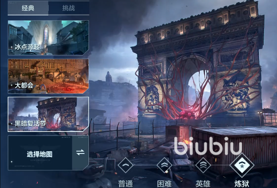 当前开放的三张主题地图分别为大都会、冰点源起与暗黑复活节,各具独特环境机制与视觉风格。所有地图均设五档难度梯度:普通、困难、英雄、炼狱、折磨。难度提升不仅体现为敌人血量与伤害增长,更引入新种类僵尸、动态障碍变化及AI行为强化,要求玩家实时调整站位策略与技能释放节奏。