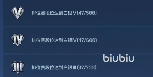 晋升至白银段位后,奖励结构明显升级。同样包含五个小段位,通关后可获得1650 GP点数,荣誉点仍为50点。GP点数增幅达136%,体现系统对玩家操作熟练度与战术理解能力提升的认可。