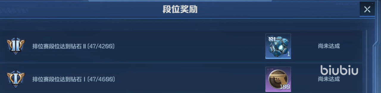 钻石段位奖励以高价值随机性为核心。从钻石五至钻石二,每晋升一个小段位均可获得1个钛金跃迁秘藏宝箱,内含传说或史诗品质武器,涵盖限时与永久两种类型;抵达钻石一后,额外发放50荣誉点。