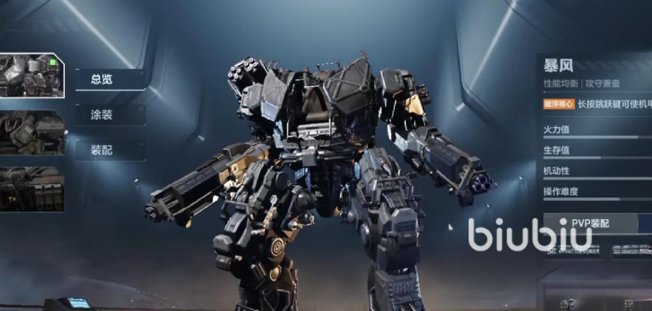 暴风机甲的核心优势在于三维空间机动能力。其悬浮系统支持长按跳跃键实现中低空滞空,有效规避地面集火并建立垂直打击优势。该特性使其特别适用于复杂地形作战与快速支援任务。武器推荐组合为双联装啄木鸟步枪(提供稳定中距离压制)与T3型追踪火箭(增强对高速移动目标的命中率),二者协同可显著提升持续输出效率与战术容错空间。