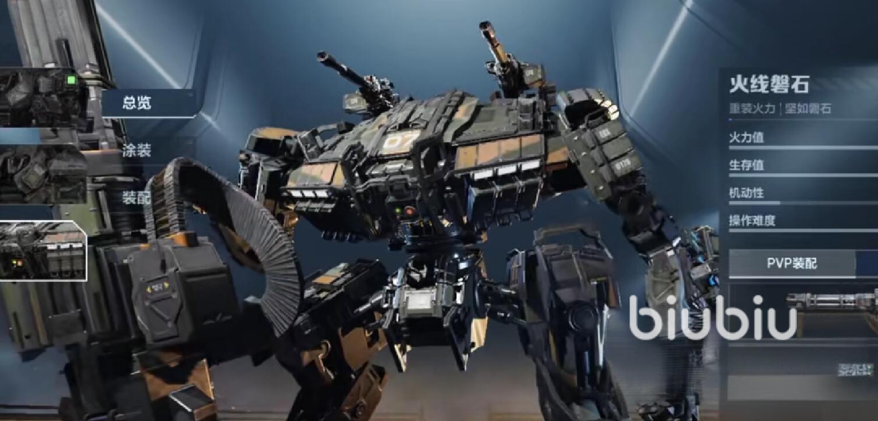 火线磐石是典型的重装突击型机甲。初始装备的双联装重装加农炮具备极高单发伤害,常规命中即可削减敌方半数血量;加装喷火器后进一步强化近距离压制能力,大幅降低瞄准精度依赖,使中短距混战容错率显著提升。该机体适用于巷战、狭窄通道争夺及阵地突袭等强调瞬间火力倾泻的战术场景。