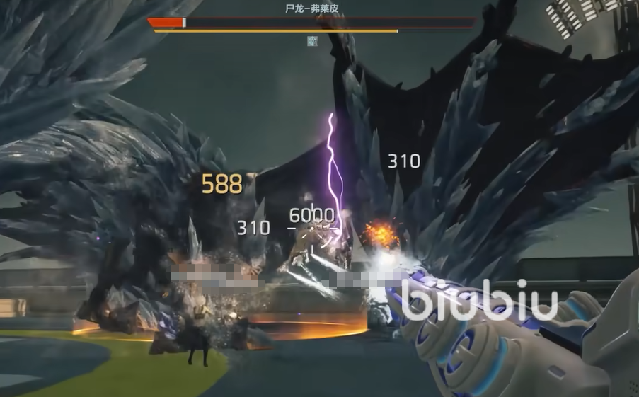 弗莱皮的核心技能具有明确前摇特征:飞扑突袭前会出现约0.8秒的身体左右晃动;冰焰喷吐则伴随颈部明显抬升及蓝白色能量汇聚光效。前者需立即横向闪避,后者建议主动贴近其腹部下方区域——因模型体积庞大,贴身位置反而处于技能判定盲区。若被冰球命中并触发冻结状态,应迅速背靠墙体静止站立,既可规避后续弹道轨迹,又能利用墙体阻挡二次冰球碰撞判定。