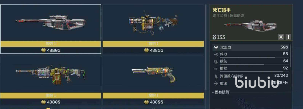 死亡猎手——金色品质射手步枪,专精中远距离持续压制。其主动技能开启后进入无耗弹高速射击状态,显著提升单位时间火力密度;被动技能赋予子弹六层防御穿透能力,且全程保持全额伤害,对高护甲目标或集群站位具备极强克制效果。在团队推进与阵地防守场景中,该武器常被部署于中后排位置,承担关键区域覆盖与火力牵制任务。
