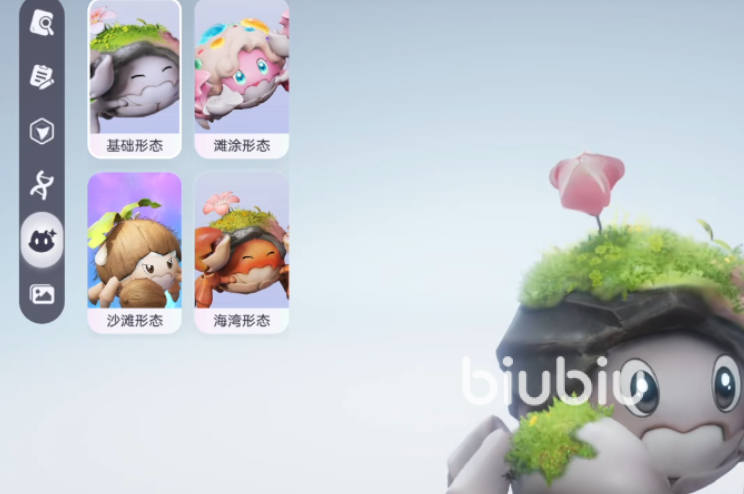 花芽蟹的基础形态由地理坐标直接决定:在湘花岸区域捕获时,呈现滩涂形态;于鲸落浅滩范围内出现时,为沙滩形态;若在欧明湾被发现,则固定表现为海湾形态。此外,该生物具备独特的情感系统——当处于恋爱状态时,头顶会随机生成一朵小花装饰,且花朵盛放程度与当前幸福值正相关,视觉反馈清晰可辨。