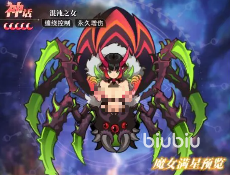 需特别注意:混沌之女并非初始可招募角色。其获取路径为——玩家等级达到60级后,解锁“魔女系统”,方可于该系统中进行召唤。作为神话品质魔女,混沌之女定位为高爆发持续伤害型输出,核心机制围绕“缠绕控制”与“永久增伤”展开,兼具战场压制与团队增益双重价值。