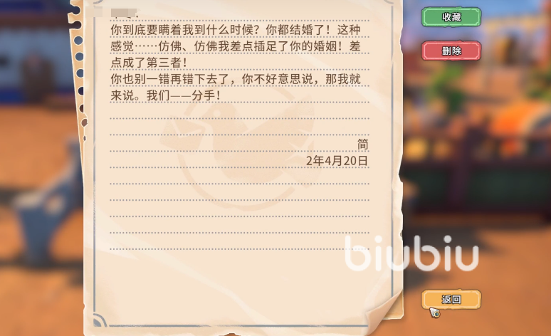 并非所有角色都提供挽回机会。部分NPC在察觉背叛行为后,会直接解除恋爱关系,既不进入心碎状态,也不发送分手信。若玩家希望主动结束关系,可前往商店购买“分手小熊”并赠予目标角色,此举不会触发分手信,且关系解除即时生效。需特别注意:收到分手信即代表该角色恋爱线永久关闭,后续无法通过常规方式复原。