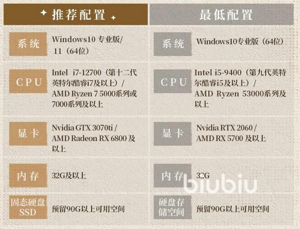 PC端推荐配置为:第12代Intel Core i7处理器、32GB内存、NVIDIA GeForce RTX 3070级别显卡,同时需预留90GB以上可用存储空间;最低运行配置则设定为:第9代Intel Core i5处理器、32GB内存、NVIDIA GeForce RTX 2060显卡。该规格已达到主流次世代客户端游戏的性能基准线。