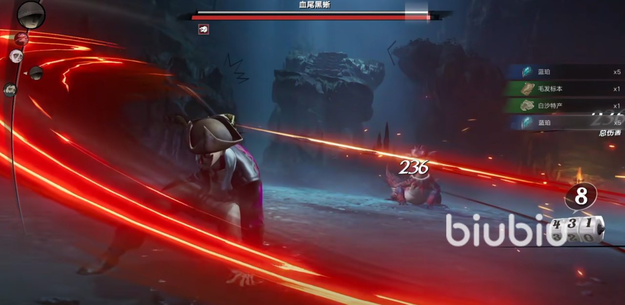 进入战斗后,血尾黑蜥初始阶段处于警戒状态,不会立即发动攻击。此时可抓住先手窗口,以普通攻击连续命中三次,随后衔接主力输出技能,触发首轮爆发伤害。该轮攻击结束后将激活骰子判定机制——若掷出点数大于5,则额外附加一次基于攻击力的固定倍率伤害,此机制不可忽略,应纳入整体输出规划中。