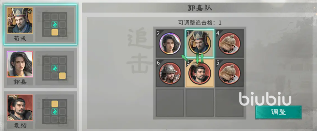 站位策略上,袁绍宜踩踏荀彧与郭嘉的追击格子,以高效触发“王佐之才”的协同效果,进一步激活袁绍多次追击能力。郭嘉无需踩格,专注技能循环即可。三名武将均建议升至鎏金品质,以解锁更高阶的追击格适配性与技能联动深度。“王佐之才”作为荀彧核心天赋,在攻防双维度提供坚实支撑,是整套体系运转的基石。