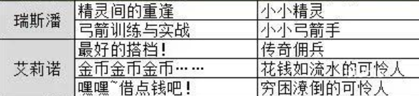 本活动共涵盖20位可交互角色,每位角色对应多个线索短句,部分线索指向同一人物,需特别注意区分。例如:【瑞斯潘】的线索包括“精灵间的重逢”“弓箭训练与实战”,其身份设定为“小小精灵”或“小小弓箭手”;【埃莉诺】线索为“最好的搭档”“金币金币金币”“嘿嘿,借点钱吧”,对应身份分别为“传奇佣兵”“花钱如水的可怜人”“穷困潦倒的可怜人”。