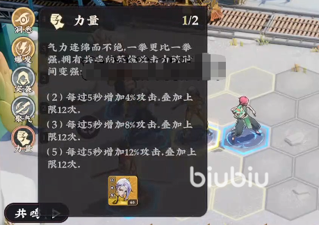 力量流派按固定周期强化输出。每5秒自动触发一次攻击增益,基础为5%攻击力提升,2级升至8%,满级达12%,属于低操作门槛、高稳定收益的通用型输出增幅方案。