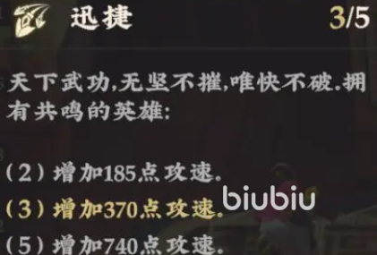 迅捷流派专注攻速成长。1级提供185点攻速加成,2级翻倍至370点,5级满阶可达740点,为依赖普攻频率或技能衔接节奏的角色提供稳定成长曲线。