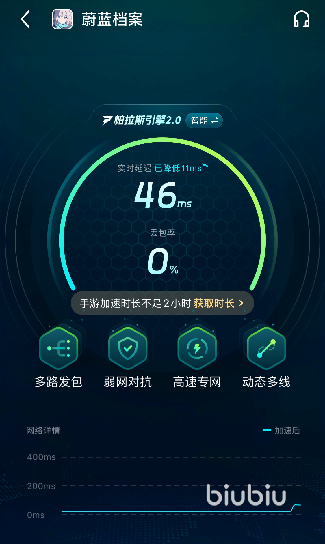 biubiu加速器由专注游戏网络优化多年的专业团队研发,其核心——帕拉斯引擎2.0,采用动态路径探测与智能节点调度技术,可实时分析全球骨干网状态,在毫秒级内切换至最优传输链路。目前已在全球部署超200个专属游戏加速节点,全面覆盖日本东京、大阪等蔚蓝档案日服主接入区域,并支持包括日服在内的多区服自动识别与一键加速。